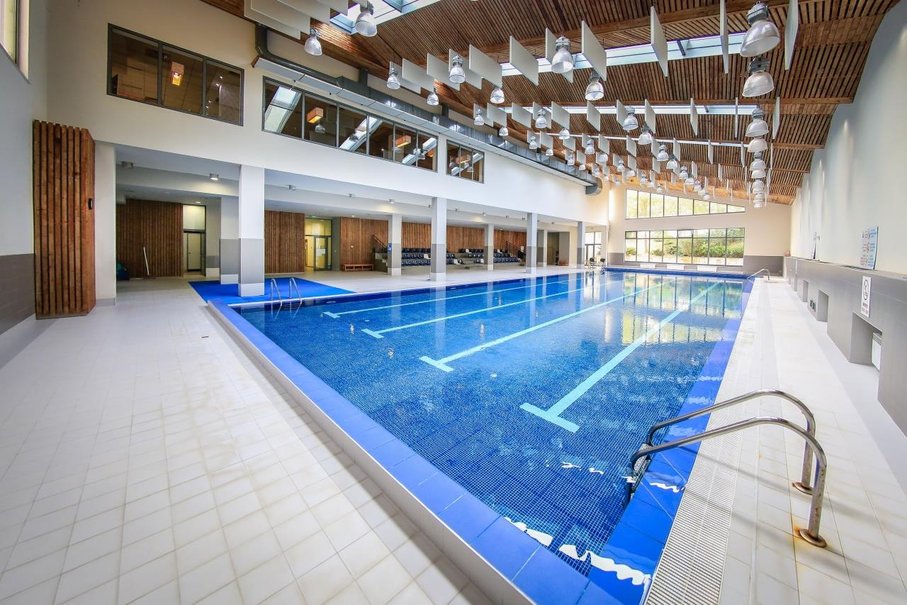 БАСЕЙН: Критий басейн 50×21 м, глибина 2,45–5,15 м. Обладнання для плавання, водного поло, стрибків у воду, синхронного плавання.